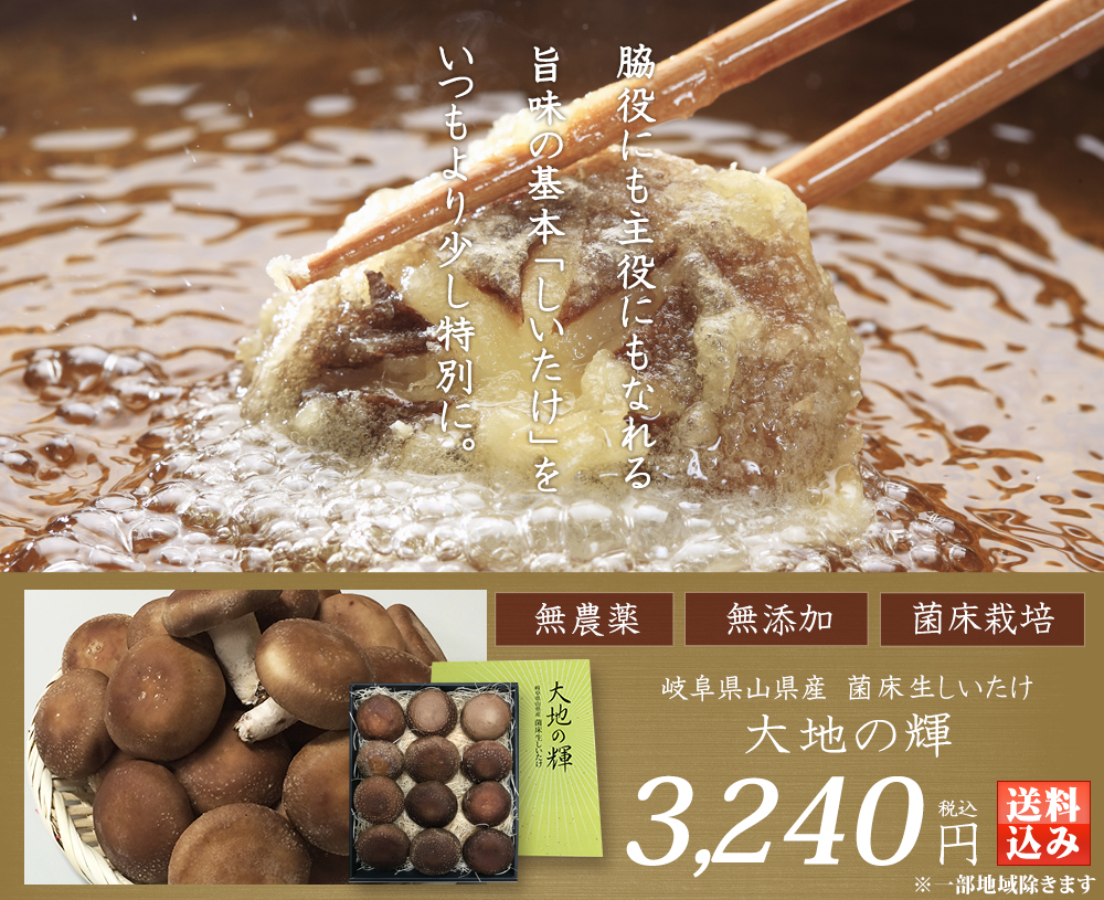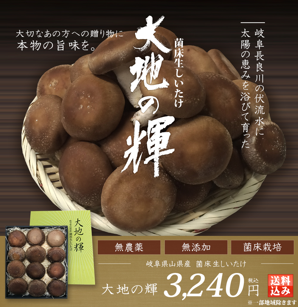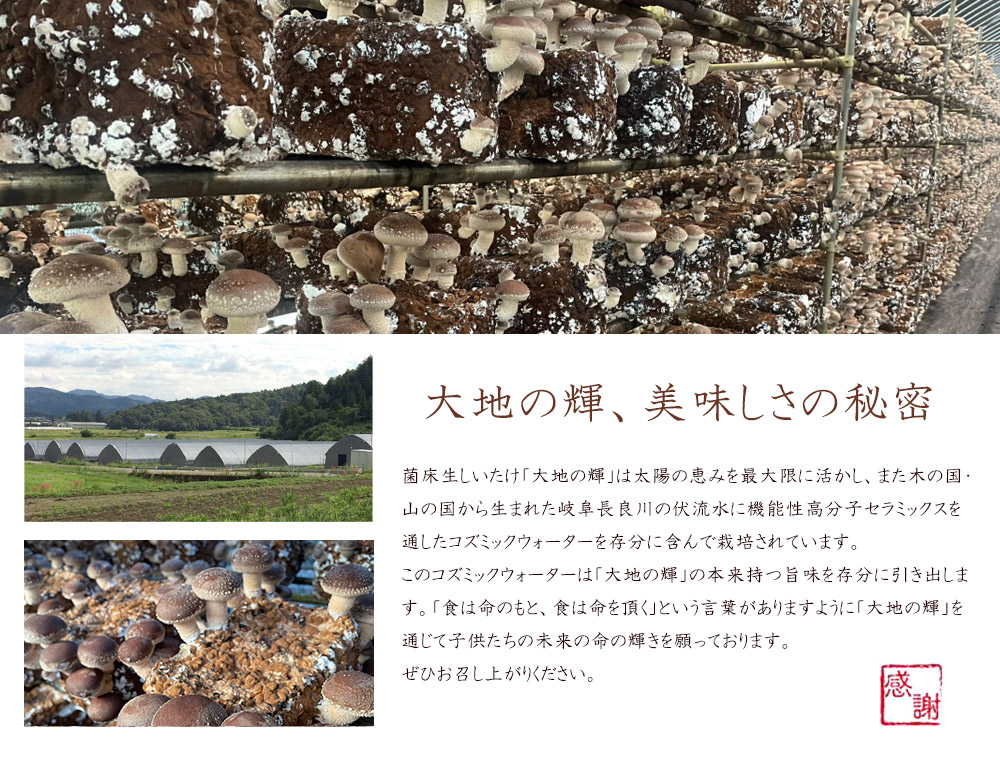マルエイが販売する岐阜県山県産 菌床生しいたけ「大地の輝(かがやき)」